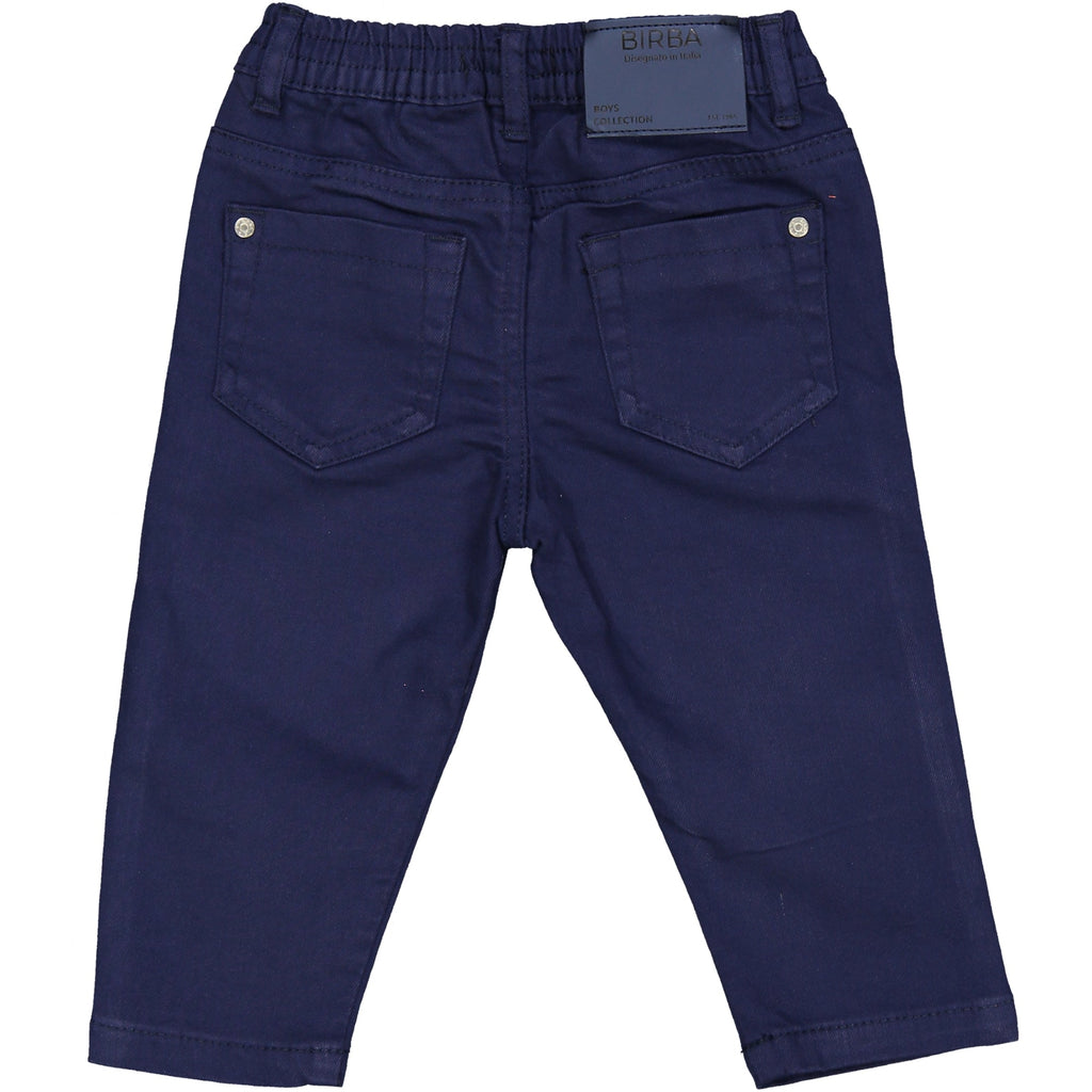 PANTALONE IN DRILL DI COTONE STRETCH, MODELLO 5 TASCHE REGULAR FIT. VITA TUTTA ELASTICATA. ETICHETTA PERSONALIZZATA SUL QUINTO TASCHINO E SALPA RETROCINTA