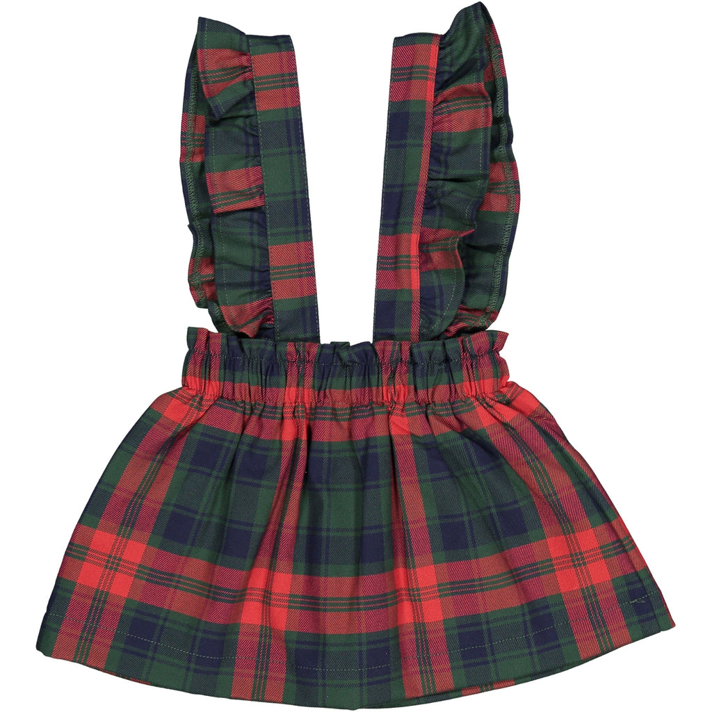GONNA IN TESSUTO LANIERO STRETCH IN FANTASIA SCOZZESE. MACRO FIOCCHI IN VITA, BRETELLE E VITA TUTTA ELASTICATA