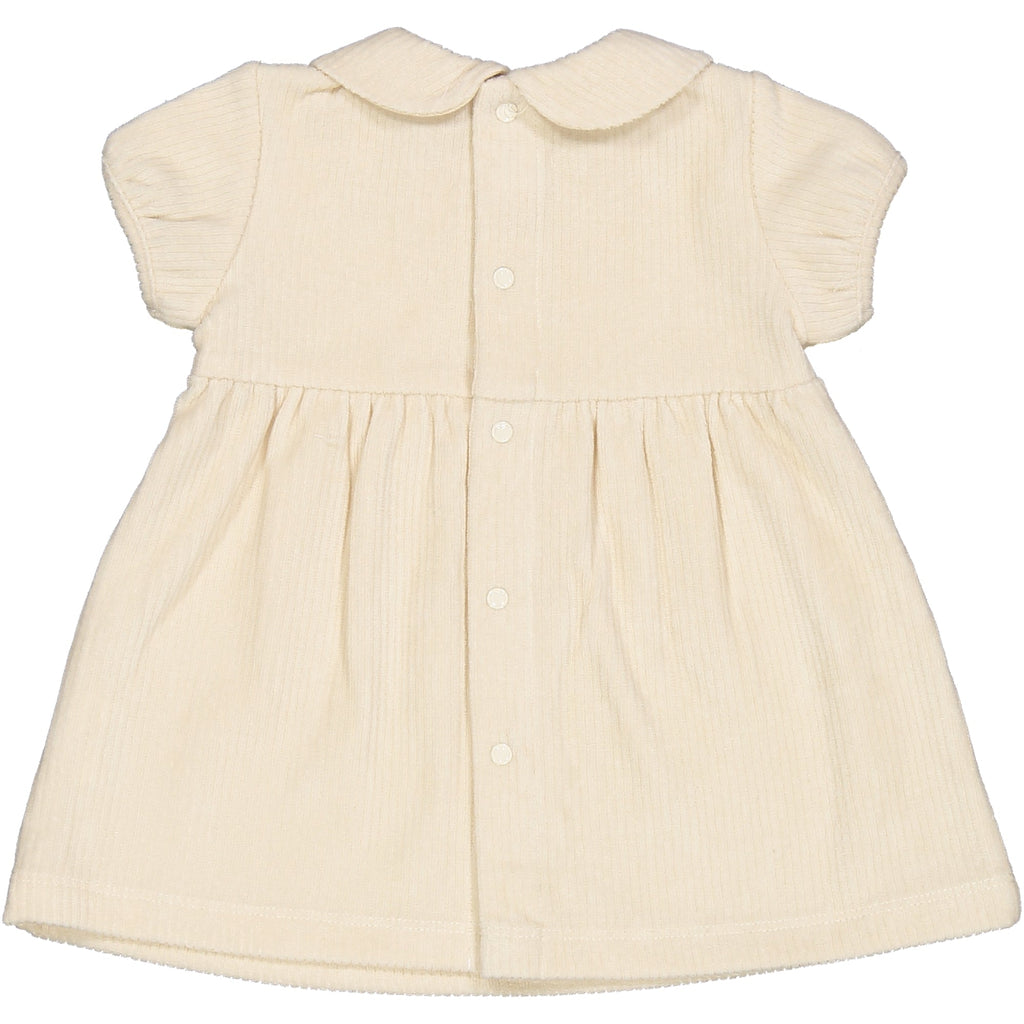 VESTITO IN CINIGLIA A COSTE STRETCH, CINTURINA IN VELOUR SULLA VITA. BOTTONCINI AUTOMATICI SUL DIETRO
