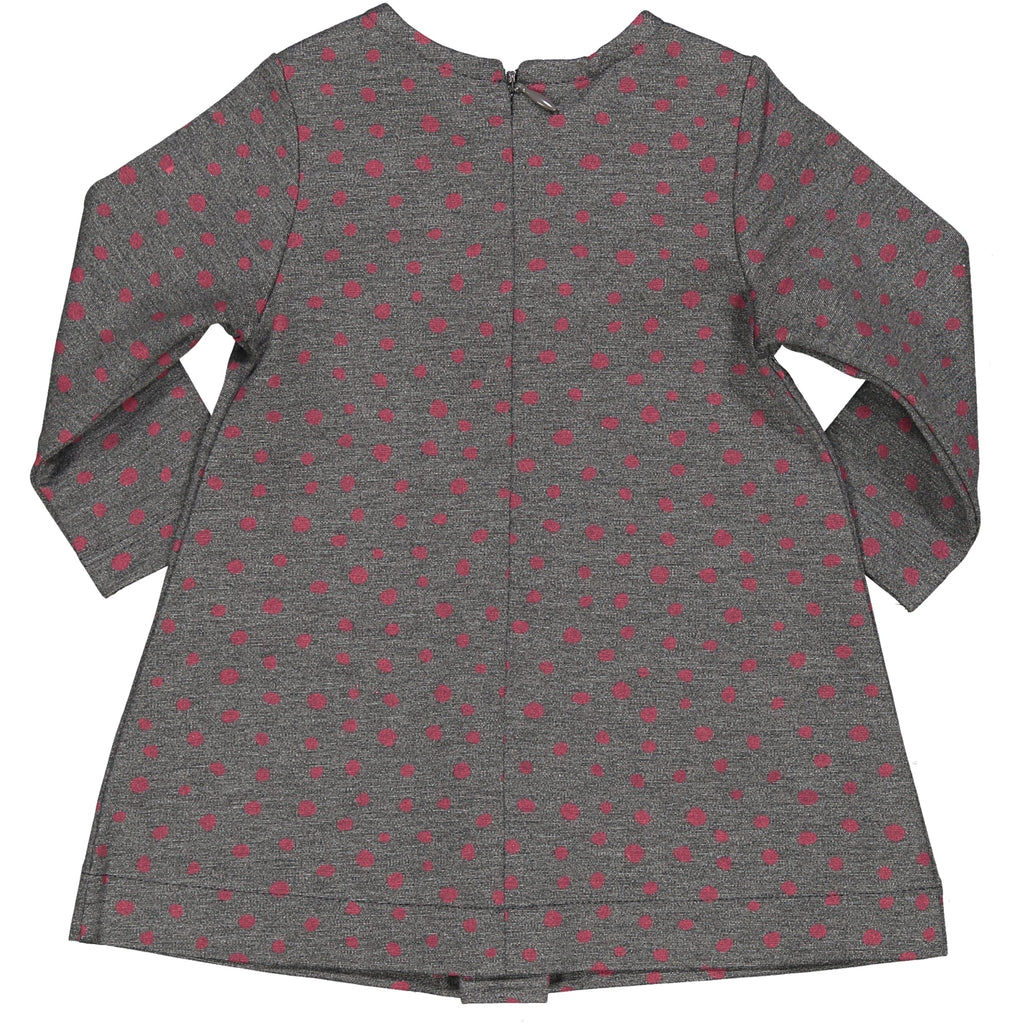 VESTITO IN TESSUTO PUNTO MILANO STRETCH IN FANTASIA MACCHIE. MACRO FIOCCO SUL DAVANTI. ZIP INVISIBILE SUL DIETRO