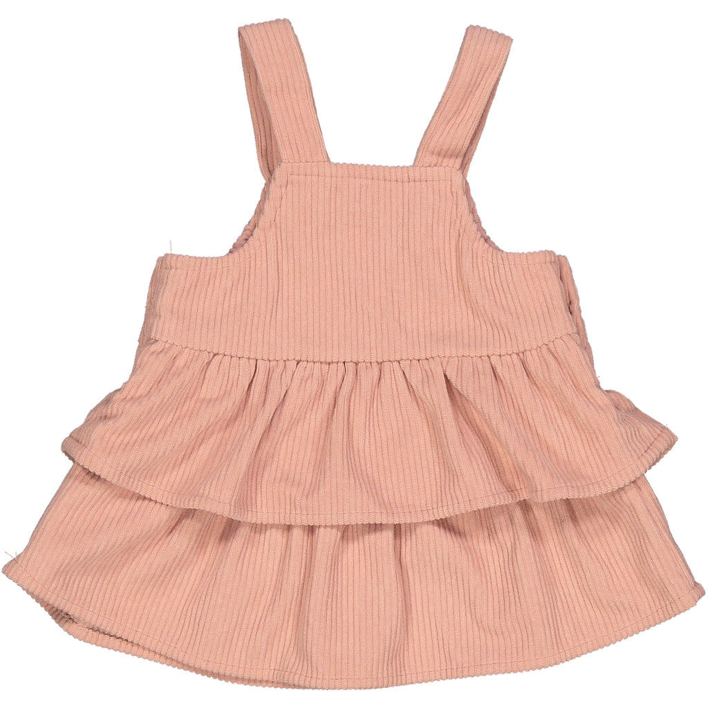 SALOPETTE GONNA IN VELLUTO A COSTE. MODELLO CON BALZE SULLA PARTE DELLA GONNA. DETTAGLIO BOTTONCINI A FORMA DI CUORICINO SULLA PETTORINA