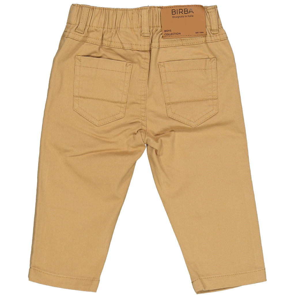 PANTALONE IN DRILL DI COTONE STRETCH, MODELLO 5 TASCHE REGULAR FIT. VITA TUTTA ELASTICATA. ETICHETTA PERSONALIZZATA SUL QUINTO TASCHINO E SALPA RETROCINTA