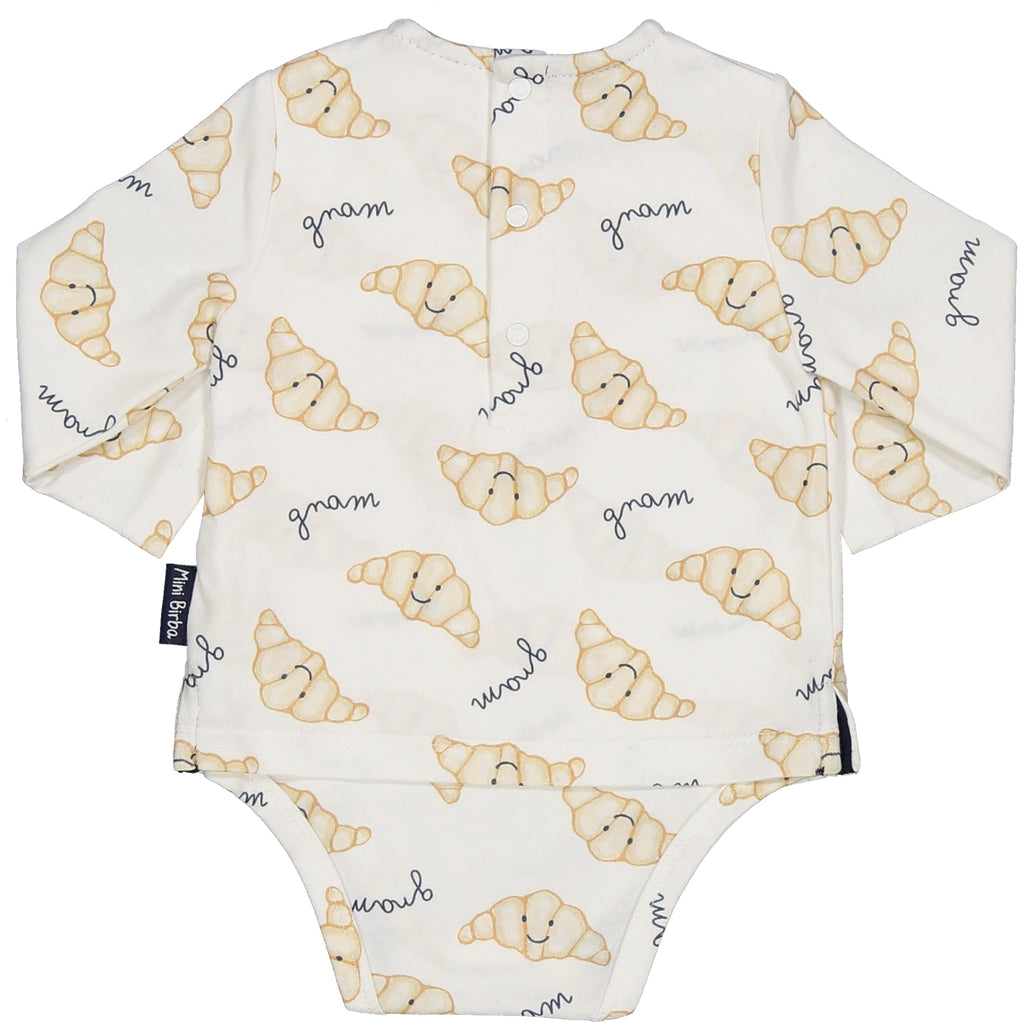 BODY IN JERSEY DI COTONE 100% PER IL MASSIMO COMFORT SULLA PELLE. FANTASIA CROISSANT. APERTURA SUL DIETRO CON BOTTONCINI AUTOMATICI. BOTTONI EFFETTO LEGNO FIGUARTIVI SUL DAVANTI ED APERTURA ENTROGAMBA CON BOTTONI A PRESSIONE. ETICHETTA BANDIERINA PER