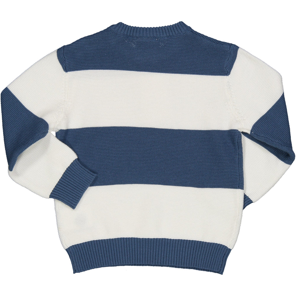 MAGLIA GIROCOLLO IN TRICOT FANTASIA RIGATO. CON RICAMO BIRBA SU DAVANTI BASSO E PRATICA APERTURA SU SPALLA CON BOTTONCINI