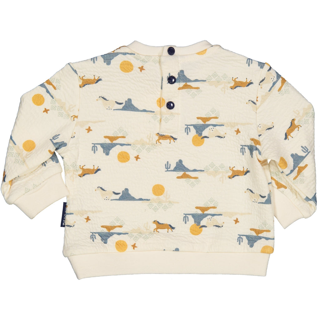 MAGLIA IN TESSUTO GOFFRATO FANTASIA RANCH. PRATICA APERTURA CON BOTTONCINI AUTOMATICI SUL RETRO. ETICHETTA BANDIERINA PERSONALIZZATA IN SERITA NEL FIANCO