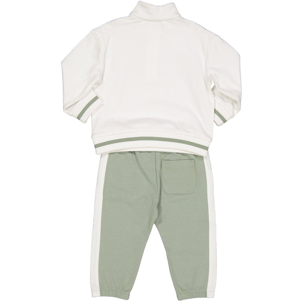 COMPLETO IN FELPA DI COTONE. MODELLO RELAX COMPOSTO DA CARDIGAN FULL ZIP CON COLLO E STAMPA SUL DAVANTI. PANTALONE CON DETTAGLIO BANDE SUL FIANCO ED ELASTICO PER VITA E FONDO GAMBA