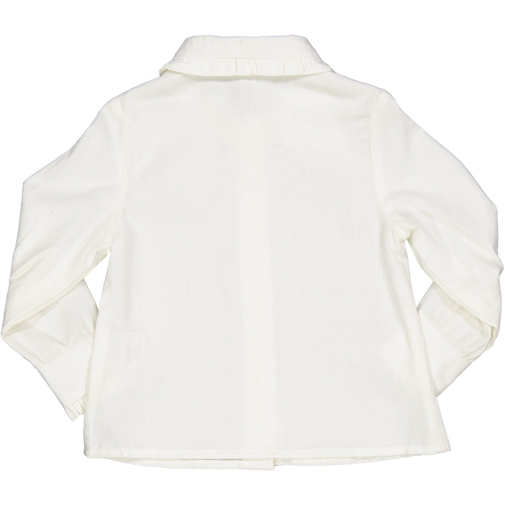 CAMICIA IN CALDA E MORBIDA FLANELLA, MODELLO CON COLLETTO E FONDO MANICHE CON ROUCHES. BOTTONI EFFETTO MADREPERLA SUL DAVANTI