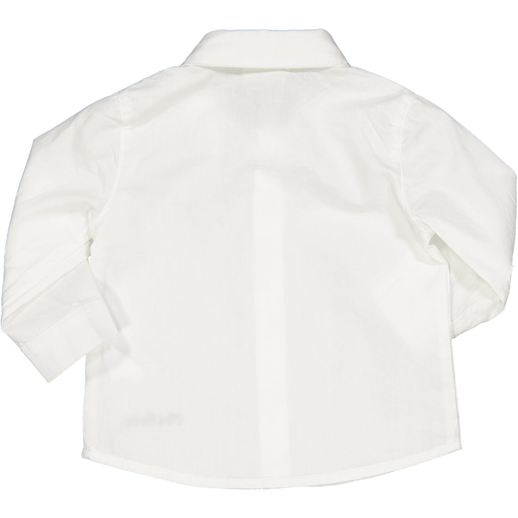 CAMICIA IN POPELINE DI COTONE, DETTAGLIO BOTTONCINI EFFETTO MADREPERLA PERSONALIZZATI. RICAMO MINI BIRBA SUL FONDO DAVANTI
