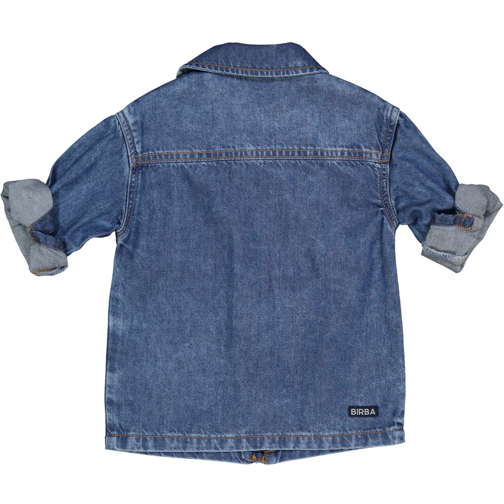CAMICIA IN JEANS MODELLO OVERSIZE. TASCHE SU PETTO ED APERTURA FRONTALE CON CERNIERA. ETICHETTA PERSONALIZZATA SU DIETRO BASSO